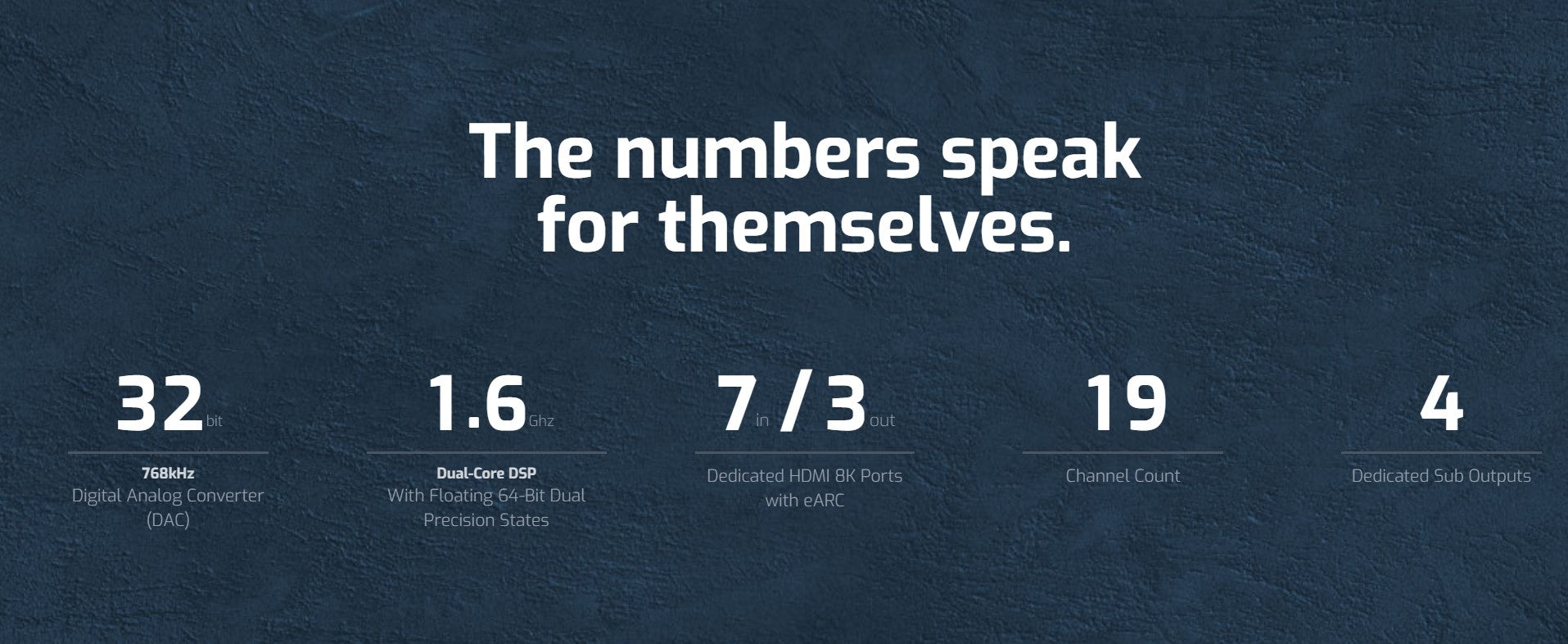 - New Electronics platform, up to 15.4 channels, HDMI 2.1 (8K) and HDCP 2.2