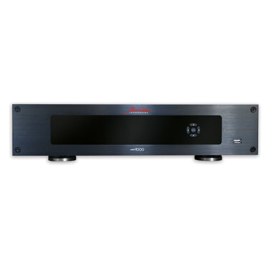 The James M1000 mono subwoofer amplifier is a 2U, high efficiency, class D design producing over 1000W of RMS power into both 4 ohm AND 70 volt loads. The M1000 is a hybrid design with an internal linear power supply to provide large reserve current to the class D output stage, ensuring powerful dynamics and tight bass response. A full feature DSP front end can be configured via the 5-button controller and 2-line display on the front panel. Firmware updates can be uploaded via the USB connector.