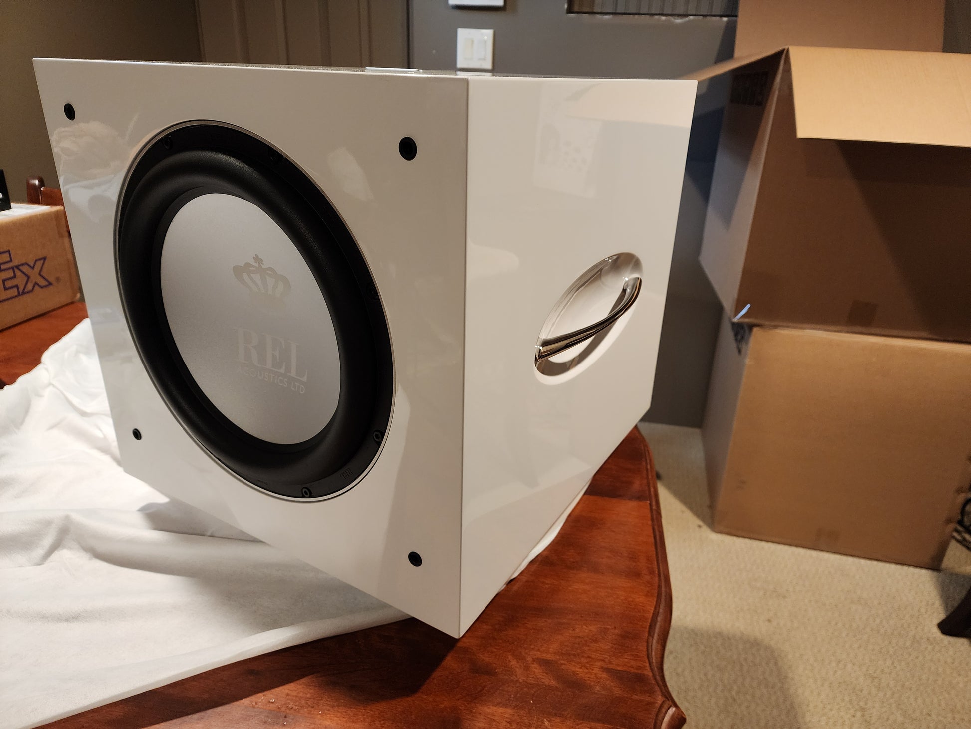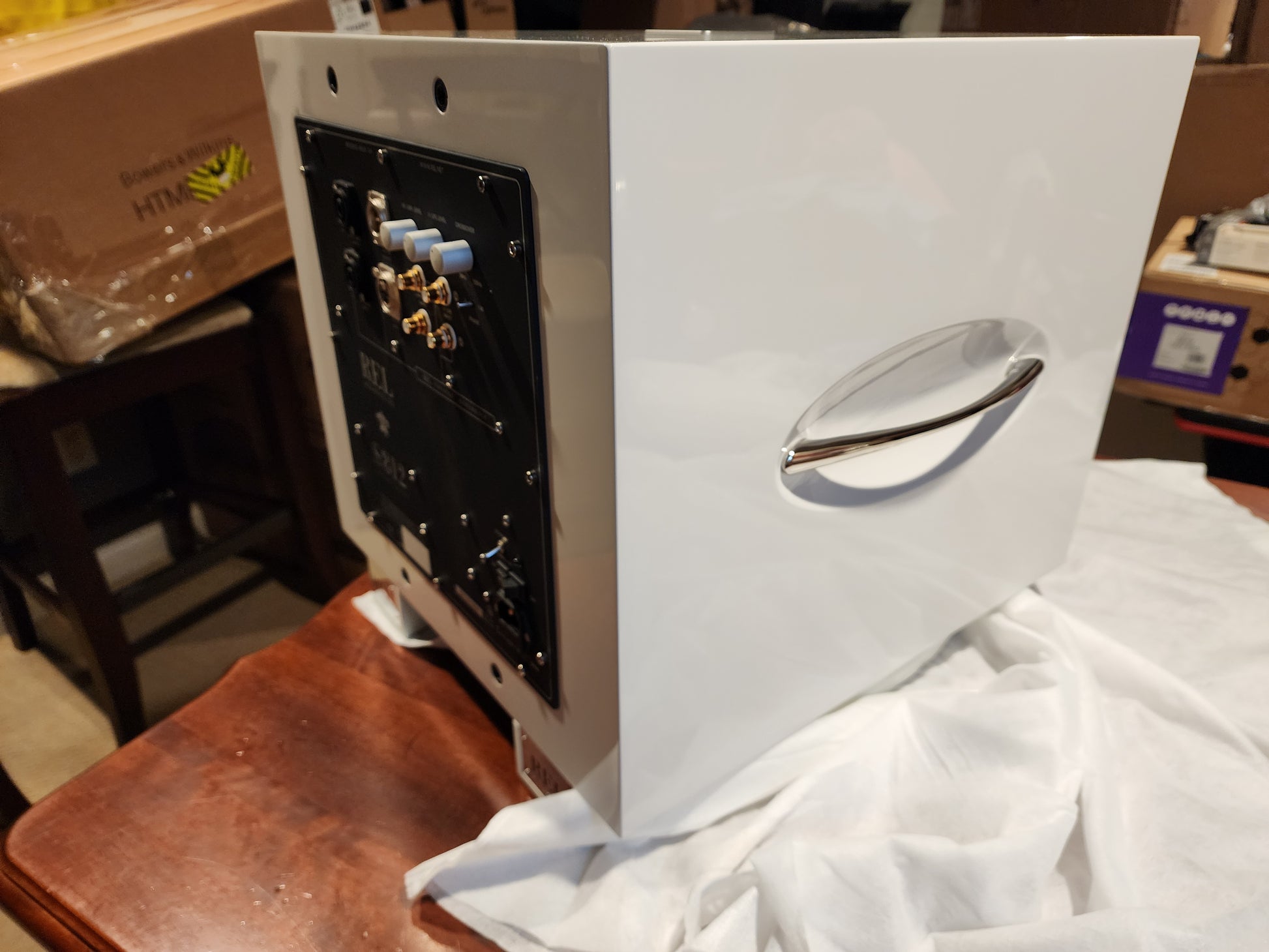 These subs were G3Fi demo units before being relieved with Carbon Specials and are in like new condition. The only flaw is a pinhead-sized blemish from the factory in the clear coat on one sub, which is visible only when the light catches it at a particular angle. The second sub is flawless. Signs of normal wear on the bottom felt padding.