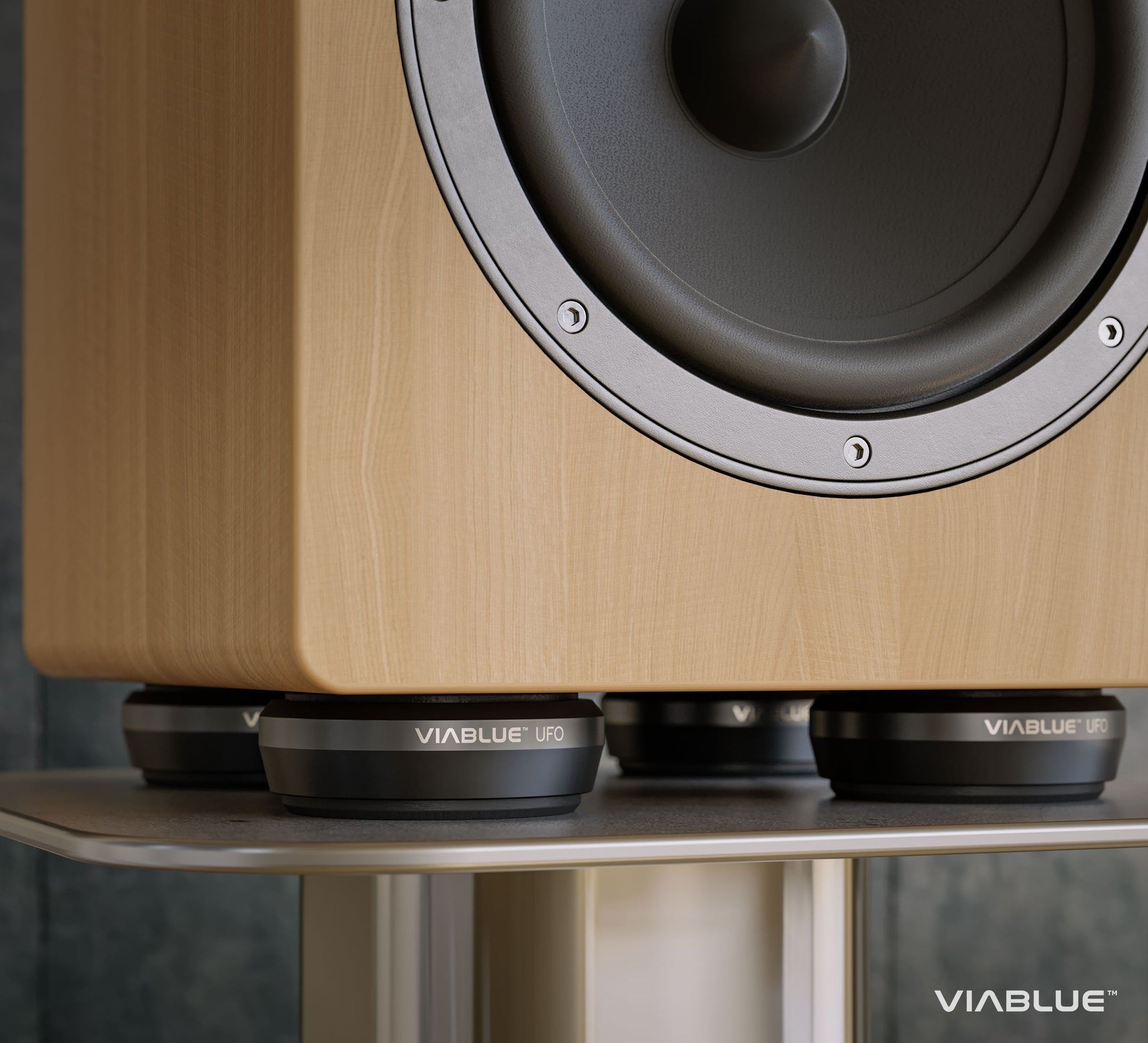 VIABLUE™ UFO XL absorbers are massive vibration dampeners, which can be placed directly underneath your loudspeakers or devices. Due to their optimal pressure on underlying surfaces, disturbing vibrations are bundled and absorbed through two membranes, the innovative VIABLUE™ softpads.